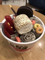 Mallの中に出来たお店でAha Rolled Creamが話題性があり写真映えもすると人気ですね。アイスクリームを平らに伸ばしそれをヘラでクルクル巻いて、フルーツやクッキーなどのトッピングと一緒に食べる今流行りのデザートです。他には夏にピッタリのフローズンカスタードが有名で賑わっているComet
