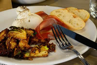 BitesにあるBrusseles Sproutsは、ローストされた芽キャベツにチリハニーとバルサミコが最強にマッチしていて、個性的なゴートチーズと合わせて食べて本当に良かった〜。