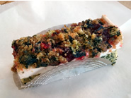 ほうれん草を使った美しい彩りのスポンジケーキで、しっとりと柔らかいバニラムースを挟んでいます。口どけの良いムースは甘さが控えめで、全体的にサッパリとした優しい味わい。 |