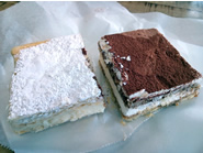 大きめサイズのティラミスは、あっさりとしたクリームが軽く口の中でスッーと溶けていくようです。一方のナポレオンはパイ生地の間のクリームがわらび餅のようにモッチリとしていて、ユニークな食感が印象的でした。 |