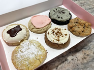 シグネチャーのチョコチップクッキーに次いで、週替わりのフレーバーの中でも一番登場頻度の高い準レギュラーのフレーバーがこちら。淡いピンクで見た目は可愛いらしいですが、アーモンドフレーバーの効いたフロスティングは少しクセがあるので、好き嫌いが分かれるかもしれません。 |