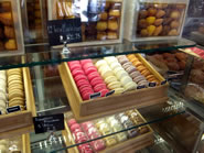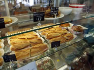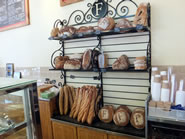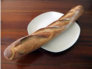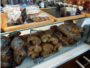 フレンチ・ベーカリーでは欠かすことの出来ないバゲットは、ザクザクと固めで塩味がしっかりとしています。アメリカのバゲットに食べ慣れていると、結構固めに感じるかもしれませんが、ハムやきゅうりをはさんでサンドイッチにすると、バゲット特有の香ばしい香りがグンと引き立ち美味です。 |