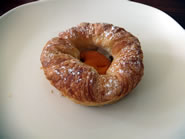 サクサクそしてふんわり軽いデニッシュの中に甘酸っぱいアプリコットが入っています。甘さが控えめのデニッシュは口に含むとバターの香りが鼻に抜け、アプリコットのフルーティーさと絶妙なバランスが最高。今回、色々と食べてみたパンの中ではこれが取材班の一番のお気に入りになりました。 |