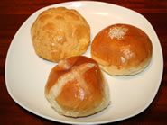 風味よいバンに卵をたっぷり使った舌触りのいいカスタードクリームが入ったクリームパンは懐かしの味。、