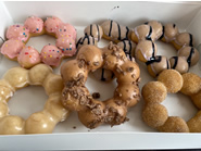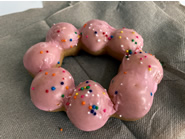 甘い香り一杯のイチゴフレーバーです。鮮やかなピング色のグレーズにカラースプリングのかかったポップな見た目が子供達に大人気。 |