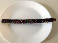 塩気の効いた棒状のプレッツェルを濃厚なダークチョコレートで包みこんでいます。周りにまぶした粒々のスプリンクのガリッとした食感が印象的で、カカオの香りがかおる濃厚なチョコレートとプレッツェルのバランスも絶妙。 |