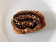 香ばしいキャラメルでチョコレートをクルッと巻いたお菓子。カカオの風味がよいチョコレートにキャラメルの甘じょっぱさ、それにクランチーなアーモンドがマッチしています。 |