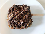 シリアルを溶けたマシュマロで固めたものに、チョコレートをかけたクリスピーバー。クルミがたっぷり入っていて食べごたえがあります。 |
