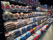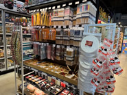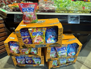 思わず「これ何?」と手に取りたくなるような、ユニークなインスタント商品が並びます。日本のうどんや焼きそばはもちろん、韓国の激辛ラーメン、サンリオキャラクターがパッケージに描かれた可愛いラーメンも注目です。 |