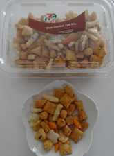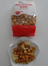 Crackers。味が薄くてちょっと変わっているのは薬品と言うかアーティフィシャルな醤油の感じがしてあまり美味しくない。見た目はどこにでもよくあるあられの種類で、食感や歯応えは良く空気を含んだ焼き上がり。他のと比べると味の違いが分かるがこれだけで食べると不味くは無くお値段安く消費者に優しいと賛否両論でした。