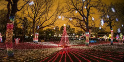 ゴルフコースを使ってドライブスルーでまわる煌びやかな世界は、100万個の電飾を使った目の覚める様なオブジェと、50本の様々なクリスマスツリーから繰り広げられています。車一台分のチケットで入場出来るので、車内でみんなとワイワイ楽しくイルミネーションが見られます。 |