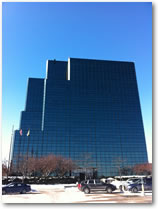 ゴルフロードにあるホテルハイヤットと連絡通路でつながっている緑がかったビルの9階です。