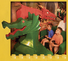 中に入るとまず目に入るのがシカゴダウンタウンのミニチュア版。もちろんレゴで出来ているのですが、こまかい、こまかい。キスをしているカップルやコーヒーを飲んでるおじさんをチェック。その奥に続くのが、Jungle Expedition。レゴで出来たジャングルの中を進んでいきます。さるやとらが薄暗い中つぎつぎと出てきます。Dragon Rideでは、竜の背中にのって中世のお城を旅します。レゴのステンドグラスや眼を光らせたこうもりが天井からにらんでいますよ。