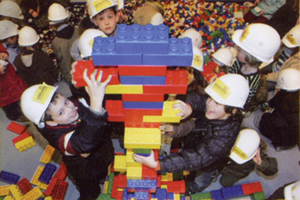 カフェテリアの周りには、大小さまざまなレゴと車を作って、走らせることのできる坂やビルを作って強度を調べる土台があり、子供たちが思い思いにレゴを作っていました。使いきれないほどのレゴを使って遊ぶのは、子供たちにとってはたまらない魅力となっているようで、同じ広場にある滑り台などの遊具よりもレゴの組み立てのほうが断然人気。一日券で入るとかなり高めの入場料なのですが、年間チケットを買って、通うのには、寒いシカゴの冬、重宝しそうです。