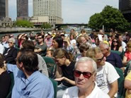 映画「ベスト・フレンズ・ウエディング」の中で、ジュリア・ロバーツが、想いをよせる男優と船上でワルツを踊るロマンティックなシーンがありますが、あれが収録されたのが今回紹介する『ファースト・レディー』のアーキテクチャー・ボートツアーです。毎年5月の初旬から11月の中旬にかけて行われるこのツアーはかなり人気があるので、平日でも電話かホームページで前売り券を購入しておいた方が良いでしょう。船着場はミシガンアベニューとシカゴ川の角にある橋の、南側の階段を降りた所にあります。