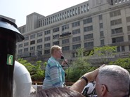 ルートとしては、最初はスタート地点から西に進み、レイクストリートから北へ、そしてその後、Uターンしてきて南下、またある程度行ったらUターンしてスタート地点に戻りますが、スタート地点を通り過ぎてネイビーピアで再度Uターンして戻ってきます。途中キャノン型の噴水があり、1時や2時ちょうどになると時報代わりに噴水がプシュッと出るのを観ることができます。90分のツアーは、天気さえ良ければ本当に最高です。シカゴにいるうちに一度は必ず参加する事をお薦めします。ただし、日焼けをする恐れがあるので、帽子、日焼け止めは必需品ですし、見上げることが多いのでサングラスもあると便利です。船は非常にゆっくり進むので船酔いの心配は少ないでしょう。